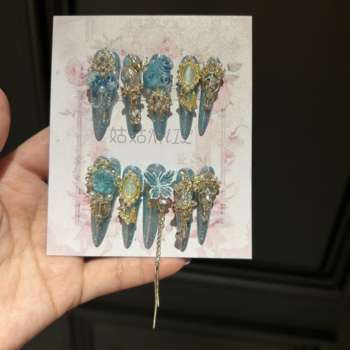 Mermaid's Fantasy Nails Wear armor press on nails,Handmade detachable, reusable, multiple wearings.
