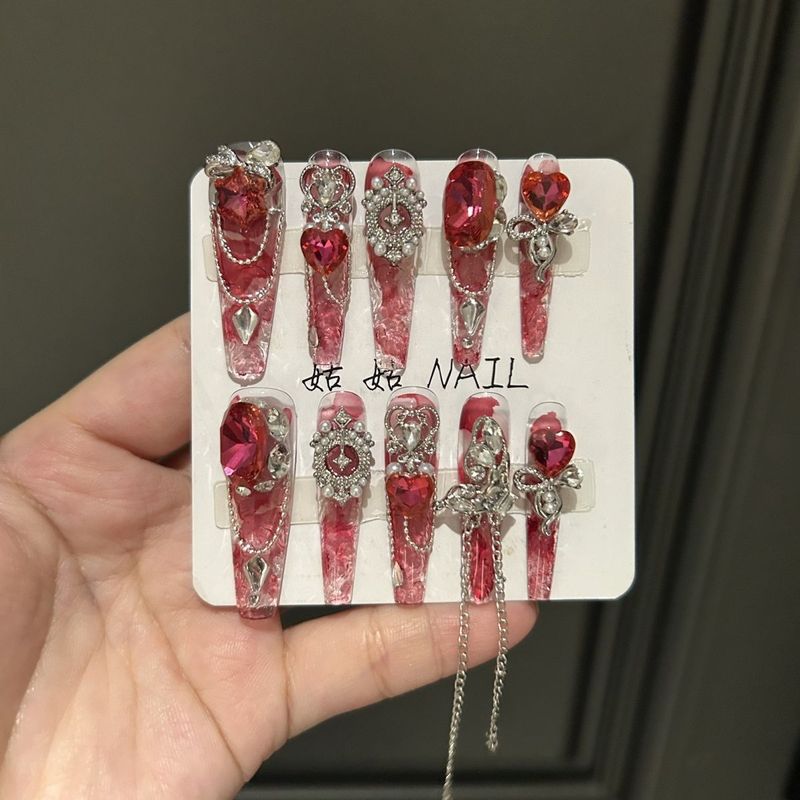 Romantic Ruby Radiance Wear armor press on nails,Handmade detachable, reusable, multiple wearings.