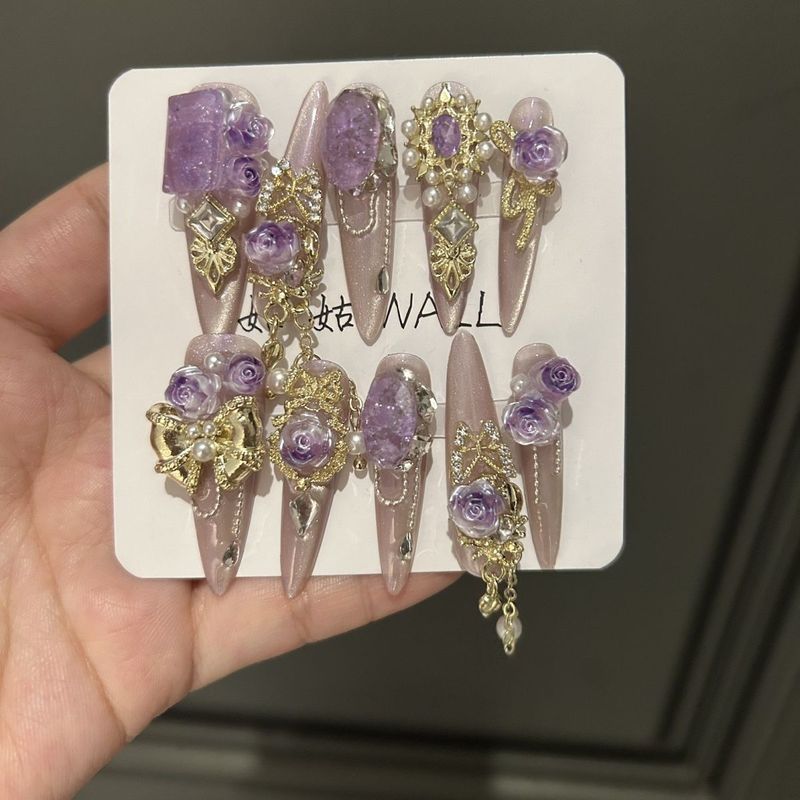 Violet Royal Fantasy Wear armor press on nails,Handmade detachable, reusable, multiple wearings.